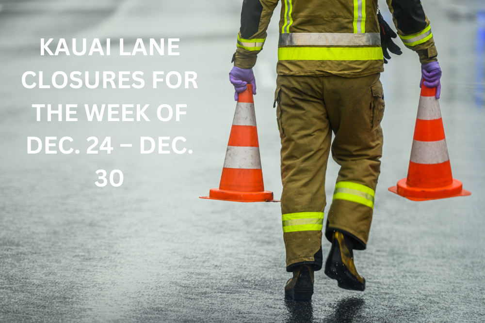 Notice from Hawaii Department of Transportation: KAUAI LANE CLOSURES FOR THE WEEK OF DEC. 24 – DEC. 30
